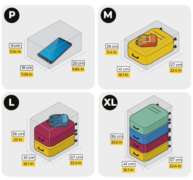 ¿Horas o días? Tu decides. Puedes dejar tus pertenencias desde unas pocas horas hasta varios días y acceder a ellas cuando lo necesites. Estamos abiertos todos los días, incluidos festivos, para adaptarnos a tu viaje.